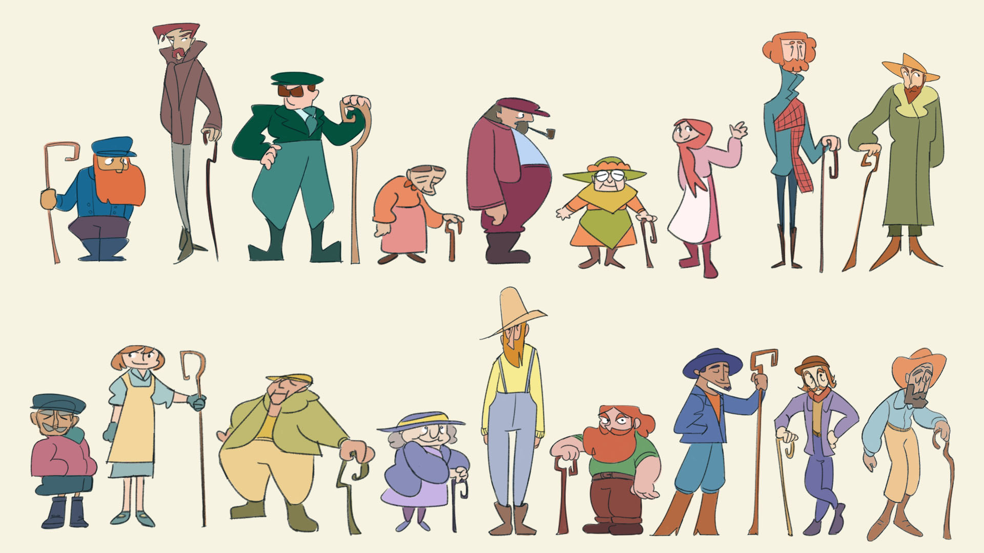 Character exploration for the main characters and background characters of my junior year film, Sabung Ayam. Showing the differences between the two characters in both stature and temperament were important to me, as well as exploring their dynamics through interactions. You can check out the film here.